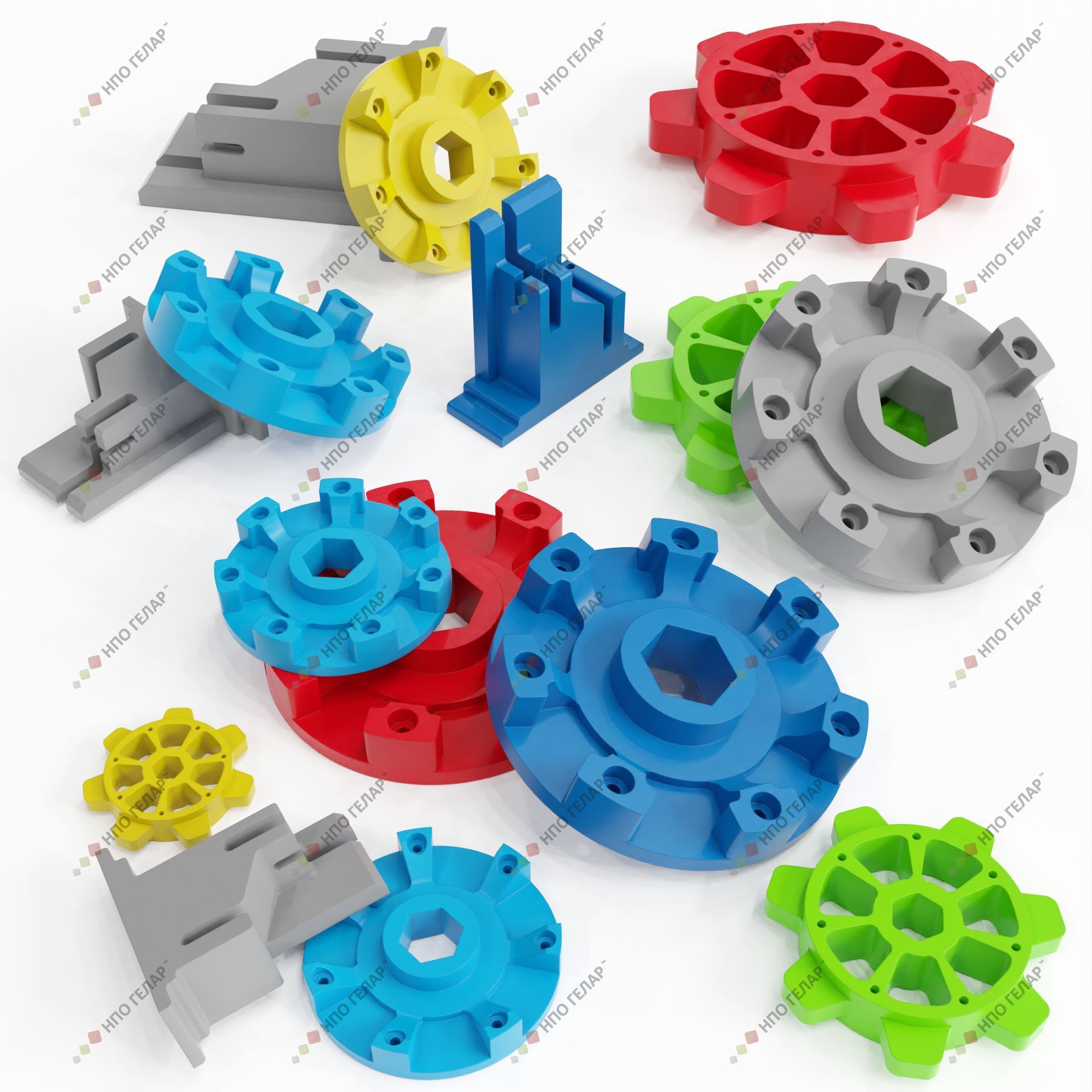 Типовые примеры: звёздочки и шкивы конвейеров, ролики и бандажи, направляющие и башмаки, износостойкие вкладыши, кронштейны, фланцы, упоры, защитные и посадочные детали для машин и линий в деревообработке, пищевой, горнодобывающей и аграрной отраслях.